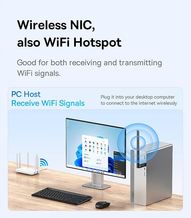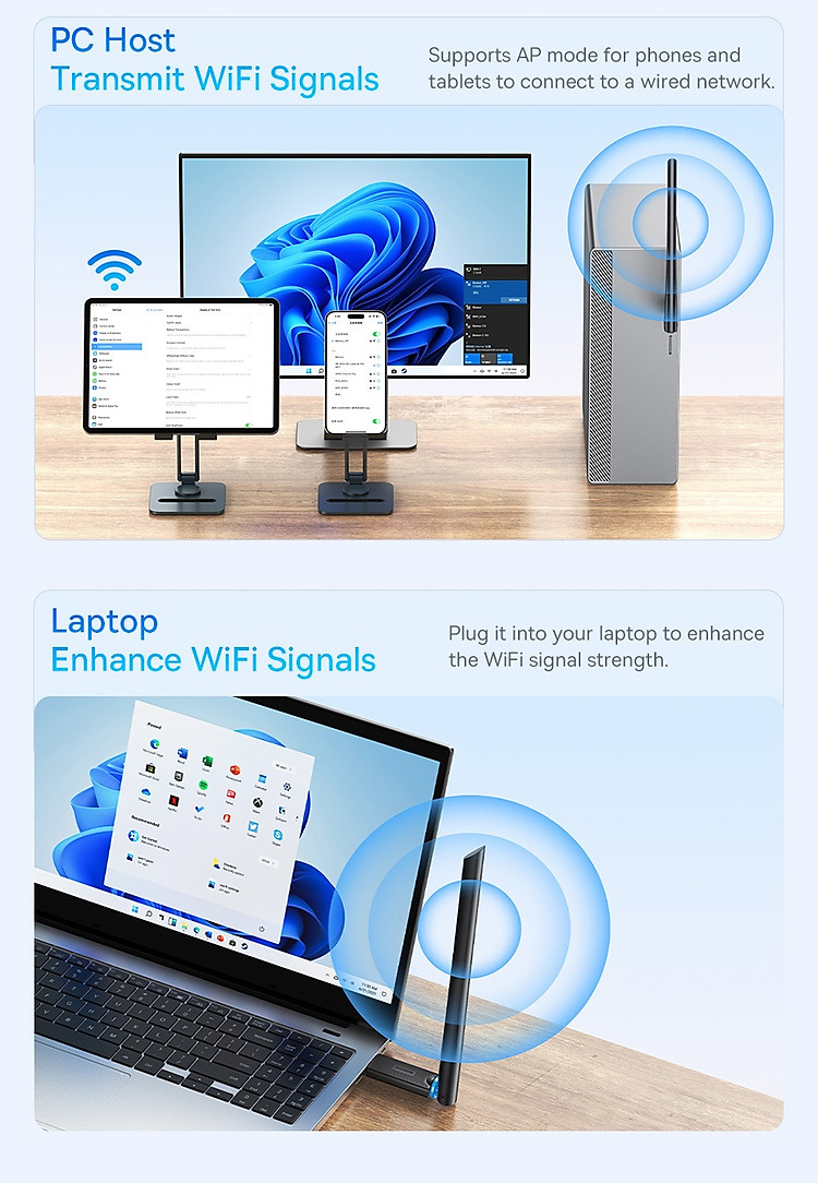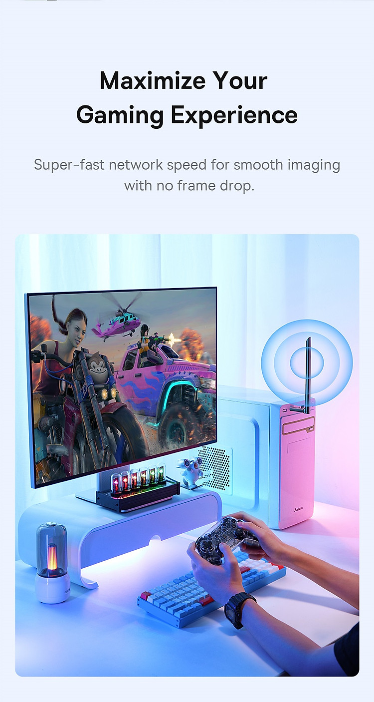 Kết Nối Tốc Độ Cao: Với chuẩn Wi-Fi cao cấp, FastJoy Series WiFi Adapter giúp bạn trải nghiệm tốc độ internet nhanh chóng và ổn định, phù hợp cho cả công việc và giải trí trực tuyến.