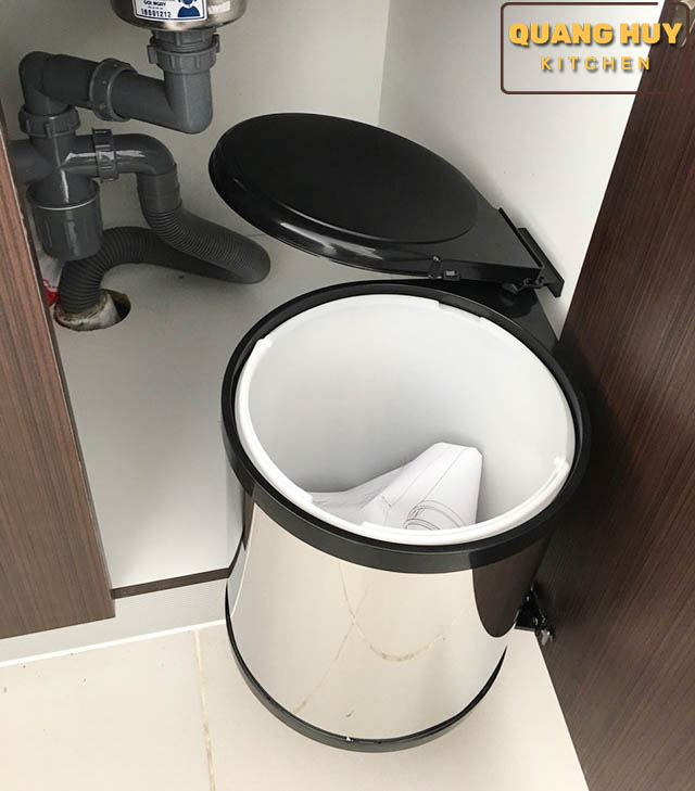1. Thùng rác tròn này thường được lắp đặt trong khoang chậu rửa. Vô cùng tiện dụng không hề tốn diện tích