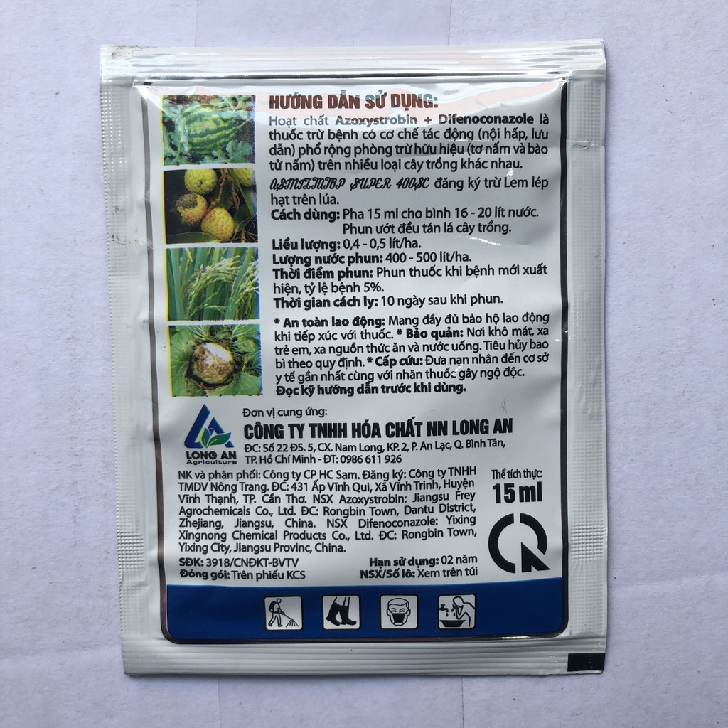 * Thành phần: 250g/LAzoxystrobin + 150g/LDifenoconazole