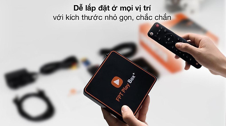Với kích thước chỉ lớn hơn bàn tay người trưởng thành Tivi Box FPT Play Box+ T550 sang trọng trong tông màu đen, viền cam nổi bật, dễ dàng bố trí và làm đẹp cho không gian sử dụng.