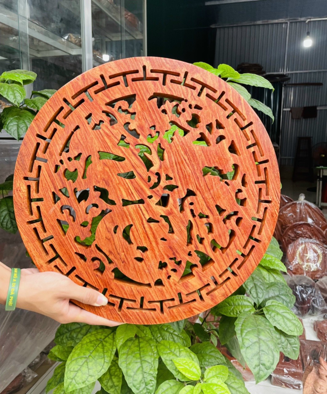 _ Tranh điêu khắc vô cùng tỉ mỉ ,tinh sảo kỳ công .Đi hầu hết tất cả mọi chi tiết góc ngách nội dung hoa văn của tranh đều được gọt tỉa chỉnh sửa sắc nét hoàn toàn bằng tay thủ công .Đồng thời tranh được kiểm định kỹ lưỡng khắt khe, như cho vào thẩm sấy cho gỗ khô kiệt .Mục đích trống dập nứt vênh mo mối mọt ,Kết hợp với trà nhám ,đánh giấy giáp nhiều nước sờ mát lạnh .Song rồi cho vào phun lót làm bóng mờ để giữ lại mầu sắc vân gỗ tự nhiên .Tranh được làm và hoàn thiện do bàn tay khối óc tài hoa .Từ những người thợ dầy rặn kinh nghiệm cũng như tay nghề cao trong làng nghề truyền thống .Chính vì thế tranh chữ phúc mặt tròn bằng gỗ hương đá đã đáp ứng đầy đủ mọi tiêu trí cần thiết như ( Đẹp bền rẻ ) Thẩm mỹ nghệ thuật với chất lượng tuyệt vời