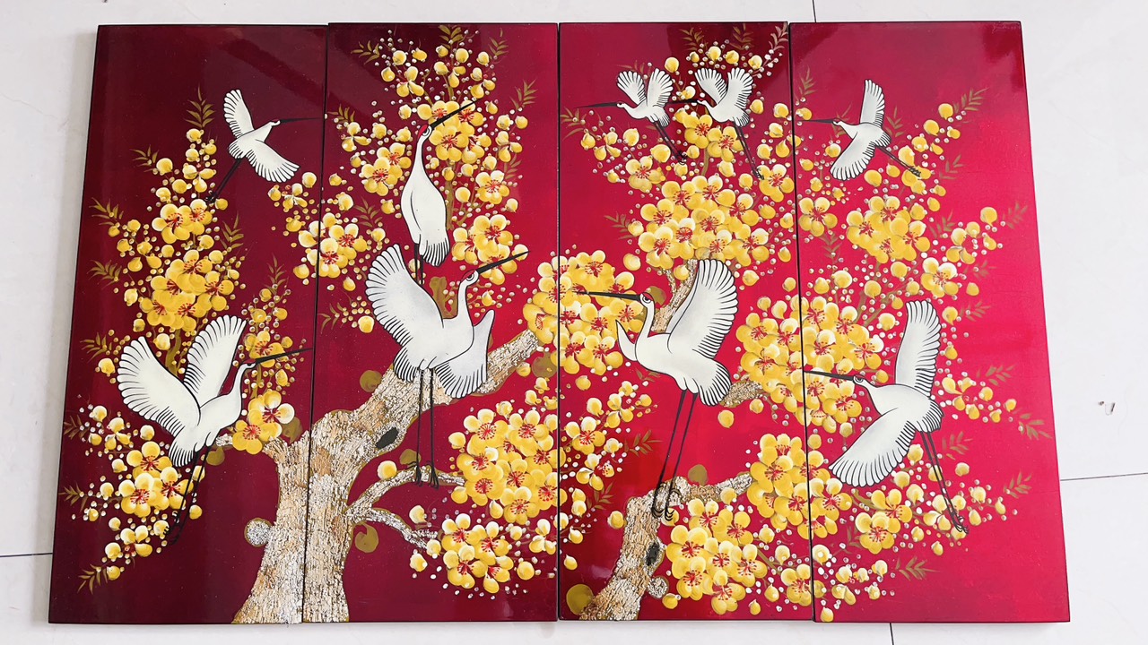Tấm Hoa đào và đàn Hạc tiên biểu hiện cho sự thịnh vượng, trường thọ, có ý nghĩa rất tốt.