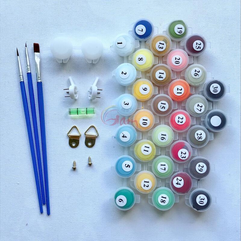 ️ Một bộ màu Acrylic đã được mã hóa theo tranh và đánh số tương ứng với các ô màu trên tranh.