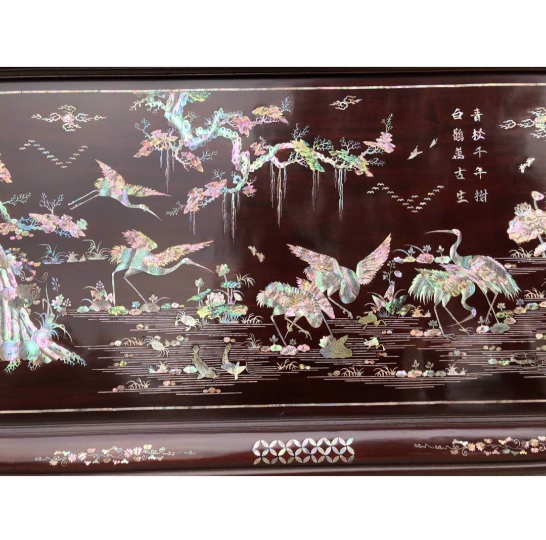 _ Tranh được cắt tỉa khắc từ những mảnh xà cừ óng ánh li tỉ mỉ ,sắp sếp vào mới nhau vô cùng đặc sắc để tạo hình , thành từ khối ,có hình mẫu cụ thể rất bài bản kỳ công ,hoàn toàn làm bằng tay thủ công .Đồng thời tranh gỗ gụ được kiểm định kỹ lưỡng khắt khe ,như cho vào thẩm sấy cho gỗ khô kiệt .Mục đích trống dập nứt vênh mo mối mọt ,kết hợp với trà nhám ,đánh giấy nhiều nước sờ mát lạnh .Song cho vào nhuộm thuốc ngụ đánh bécly làm mầu mận chín đẹp như ảnh trên .Tranh tùng hạc được làm và hoàn thiện do bàn tay khối óc tài hoa .Từ những người thợ giàu kinh nghiệm trong làng nghề truyền thống .Chính vì thế tranh khảm ốc xà cừ tích tùng hạc đã đáp ứng đầy đủ mọi tiêu trí cần thiết như ( Đẹp bền rẻ ) Thẩm mỹ nghệ thuật với chất lượng tuyệt vời