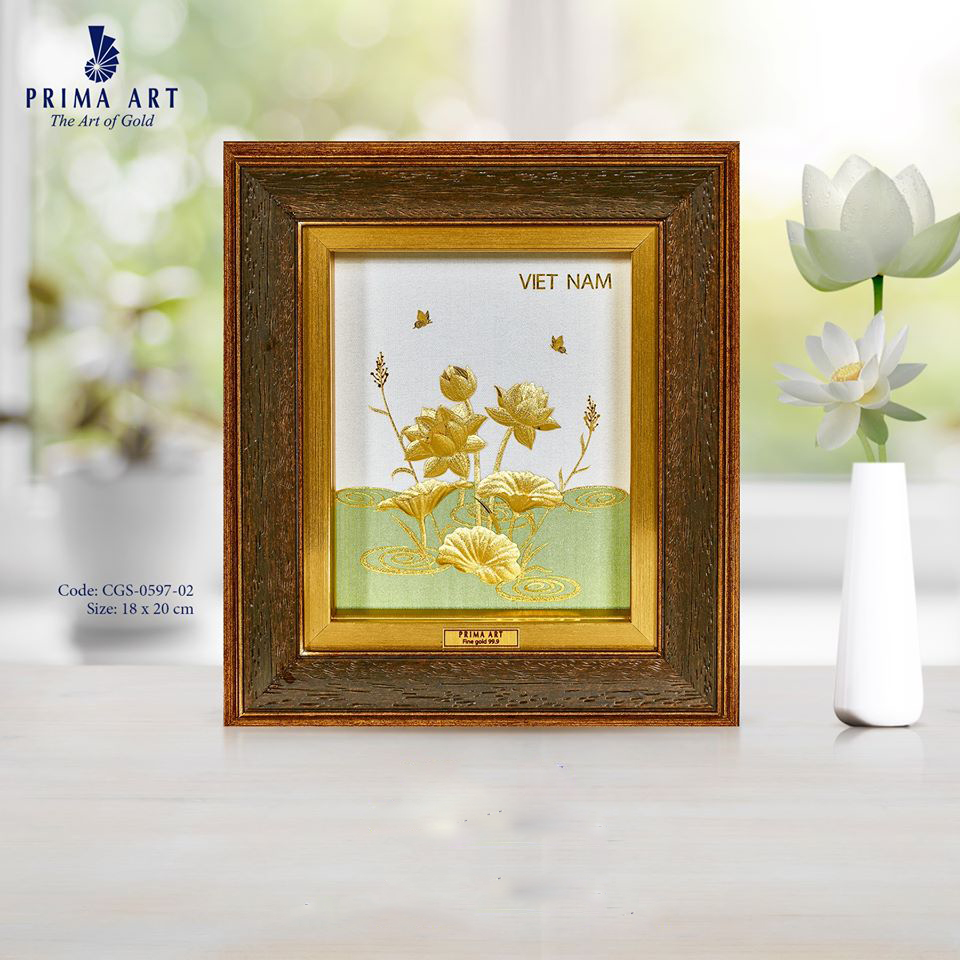 Tranh “Hoa Sen Vàng Việt Nam” Prima Art mang ý nghĩa về một cuộc sống an yên, hạnh phúc. Đồng thời, tác phẩm còn là quà tặng độc đáo mang đậm văn hóa dân tộc phù hợp gửi đến bạn bè Quốc tế.