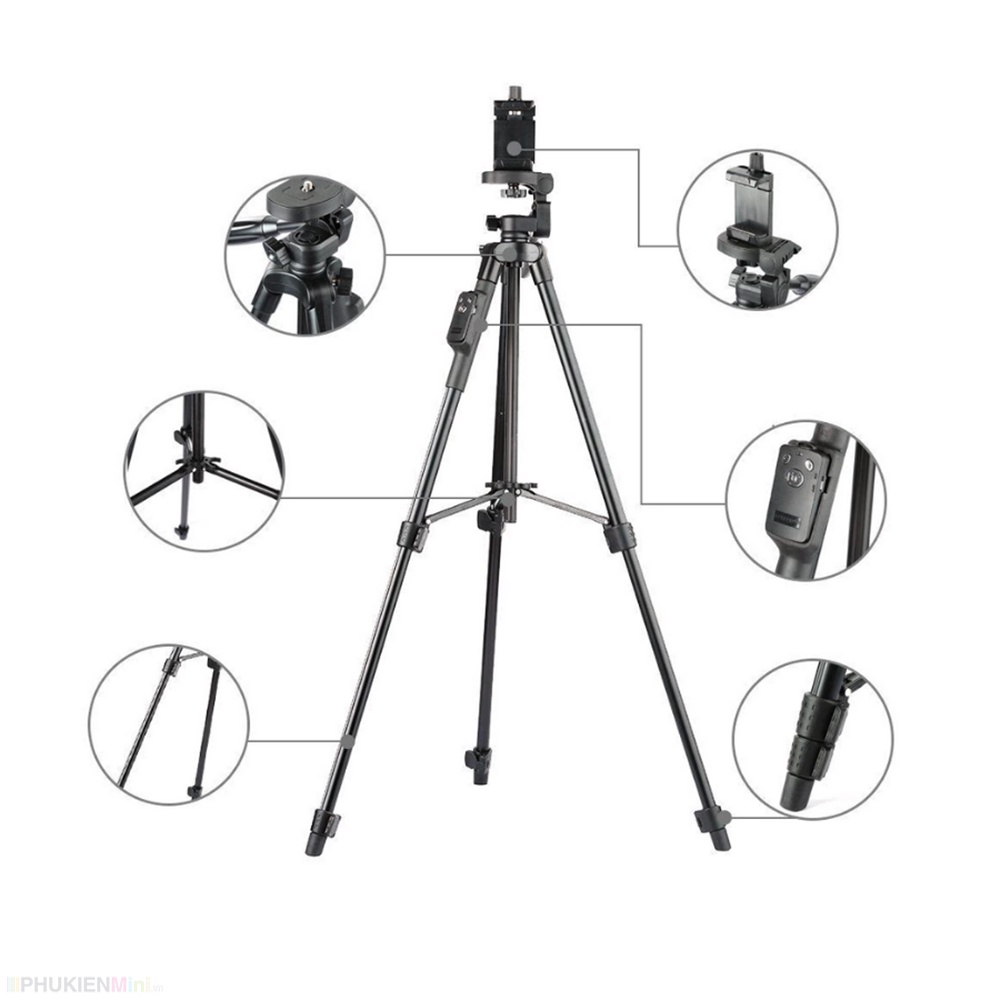 👍 Sản phẩm bao gồm: 1 bộ gồm tripod, kẹp điện thoại và remote bluetooth sạc điện