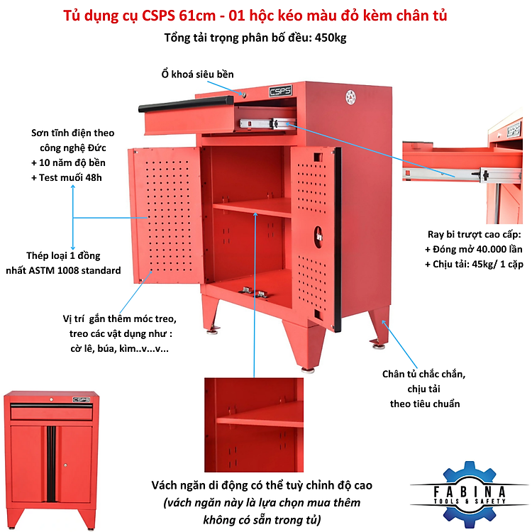 + Tải trọng / Capacity: 45 kg/ hộc kéo.