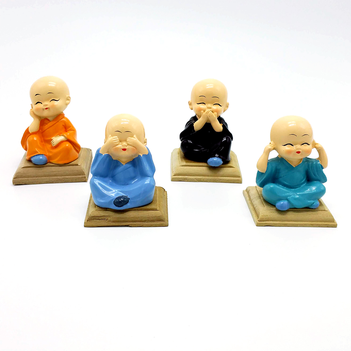 Tượng 4 chú tiểu tứ không với biểu cảm khuôn mặt tươi vui, tạo nhiều thích thú cho bạn ngay khi nhìn thấy. Màu sắc được tô phủ khéo léo, cho hình ảnh sống động như thật.