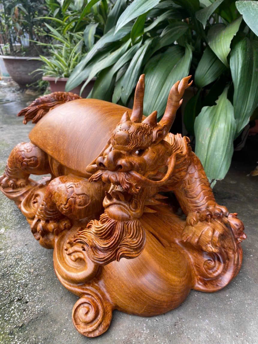 _ Cụ long quy cụ rùa hóa rồng được làm bằng chất liệu gỗ hương tự nhiên 100%