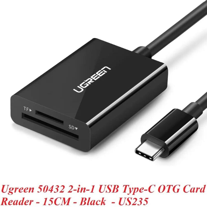 Ugreen UG50432US235TK 15CM màu đen đầu đọc thẻ 2 trong 1 USB type C OTG - HÀNG CHÍNH HÃNG