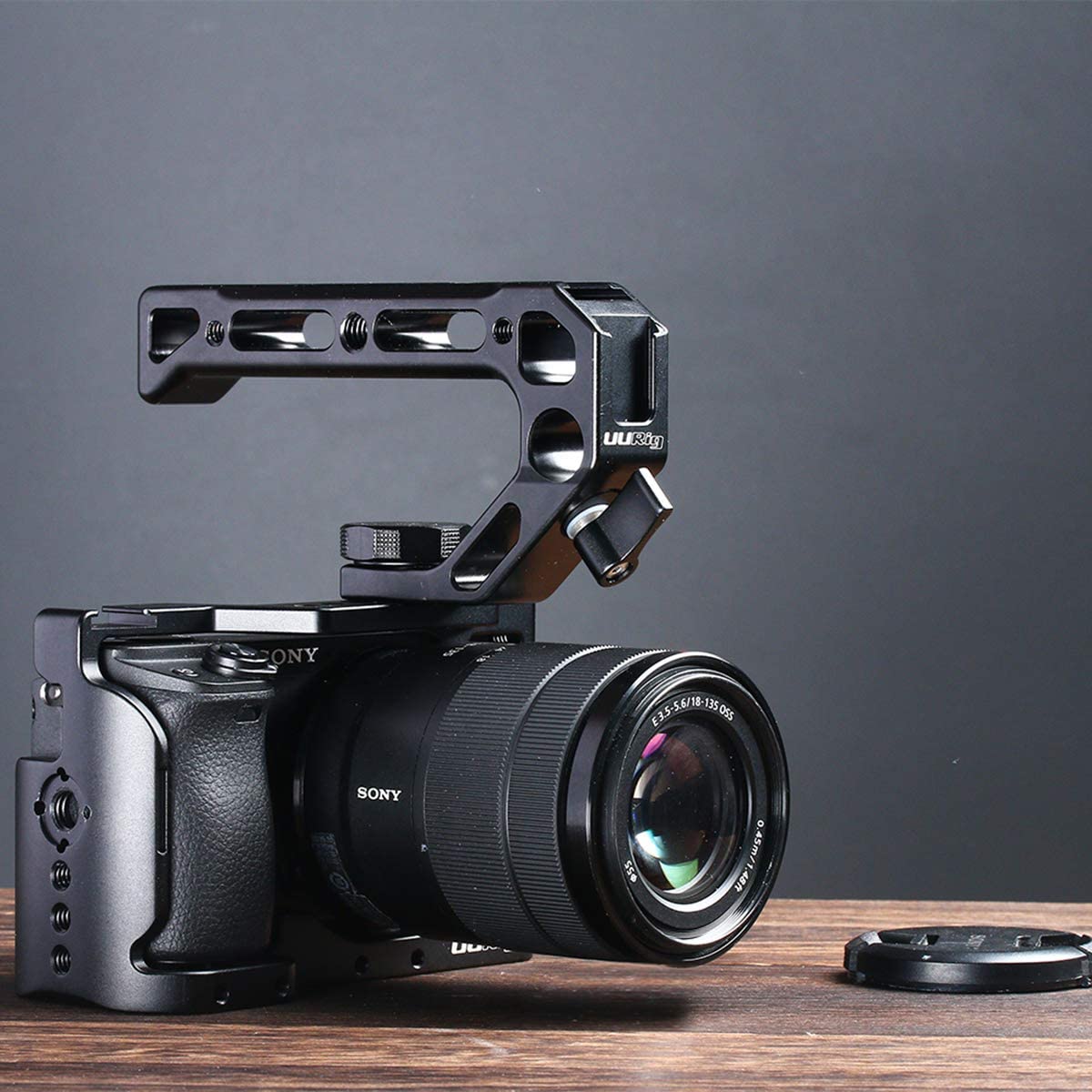 Tay cầm đa năng Uurig R008 có thể được gắn trực tiếp vào máy ảnh, thiết kế để gắn thêm phụ kiện như Monitor, micrô, đèn led,