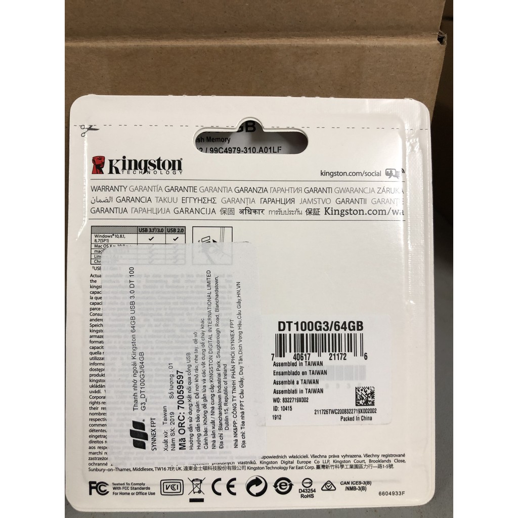 - USB 3.0 Kingston DataTraverler 100G3 64GB sử dụng được cho nhiều hệ điều hành (cả chuẩn 3.0 lẫn 2.0): Linux, Mac OS X, Windows 7, Windows 8, Windows Vista, Windows XP. Chi tiết kĩ thuật: