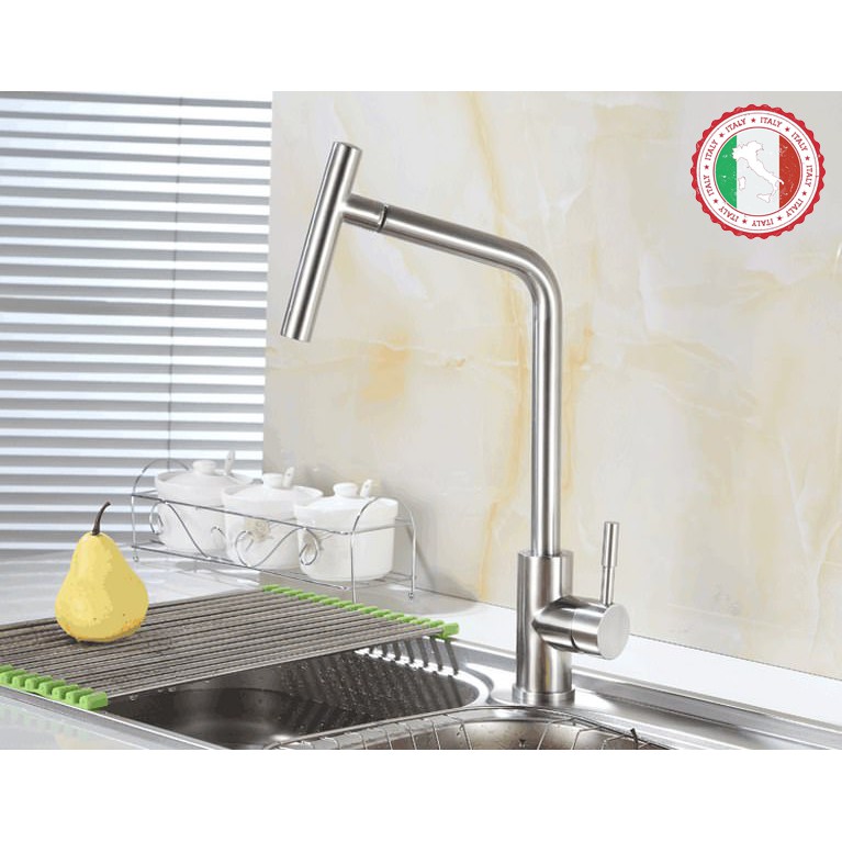 Giới thiệu Vòi rửa chén nóng lạnh (cổ vuông, đầu xoay 4 phía) SUS304 + 2 dây cấp - Cao cấp ITALIA
