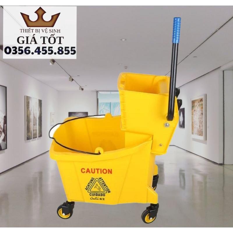 Xe vắt móp đơn lau chùi chuyên nghiệp chất lượng rất lý tưởng cho bất kỳ công việc lau chùi nào. Cấu trúc Polyethylene đảm bảo độ bền lâu dài. Xe vắt móp đơn Giúp công nhân vệ sinh di chuyển khắp sảnh văn phòng, hành lang tòa nhà, và các khu vực khác mà không làm phiền khách. Bánh xe được thiết kế để giảm tiếng ồn và lăn nhẹ nhàng, không để lại dấu trên sàn. Sản phẩm có màu vàng đặc trưng cho việc cảnh báo từ xa khu vực sàn ướt dễ trơn trượt.